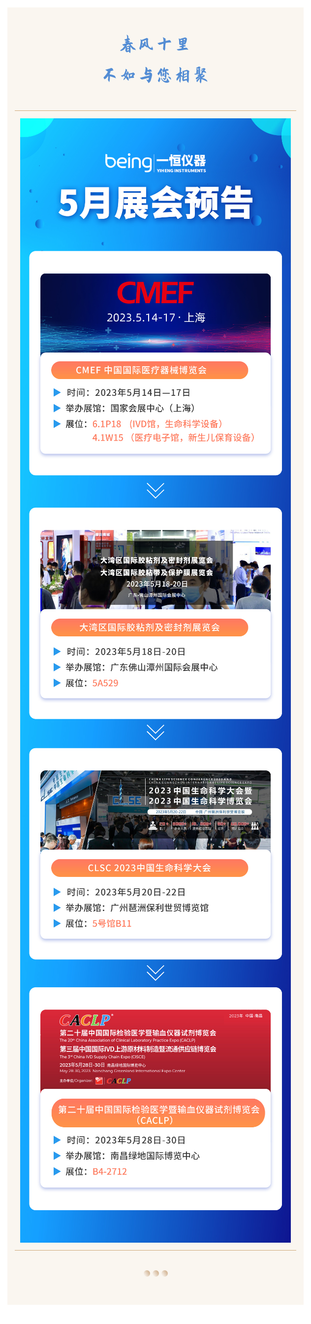 新聞資訊 您當(dāng)前的位置:首頁 > 新聞資訊 > 貝茵科技五月份參展/ 貝茵科技五月份參展/會(huì)信息指南 2023-05-05 | 文章來源: | 點(diǎn)擊率: 上一篇: “滬”聚 貝茵邀您參加2023CMEF(春季) 下一篇: “一切以實(shí)戰(zhàn)出發(fā)” 2023年度貝茵產(chǎn)品技術(shù)培訓(xùn)大會(huì)如期而至! 相關(guān)新聞: 同是干燥,卻有不同 藥品真空干燥箱在制藥領(lǐng)域的應(yīng)用和技術(shù)解析 實(shí)驗(yàn)室的“低溫助手”:覆蓋四大應(yīng)用場景,你用過幾個(gè)? 材料選型沒把握?氙燈耐氣候試驗(yàn)箱為產(chǎn)品質(zhì)量上“保險(xiǎn)” 邀請函】PCHi 2026 一恒儀器邀您共同啟“杭” 【邀請函】一恒儀器與您相約蘇州,相聚BIOCHINA2026 【公司新聞】與您相約春天 3月展會(huì)預(yù)告 分享到微信新浪微博騰訊微博人人網(wǎng)QQ好友0 返回新聞列表 >>