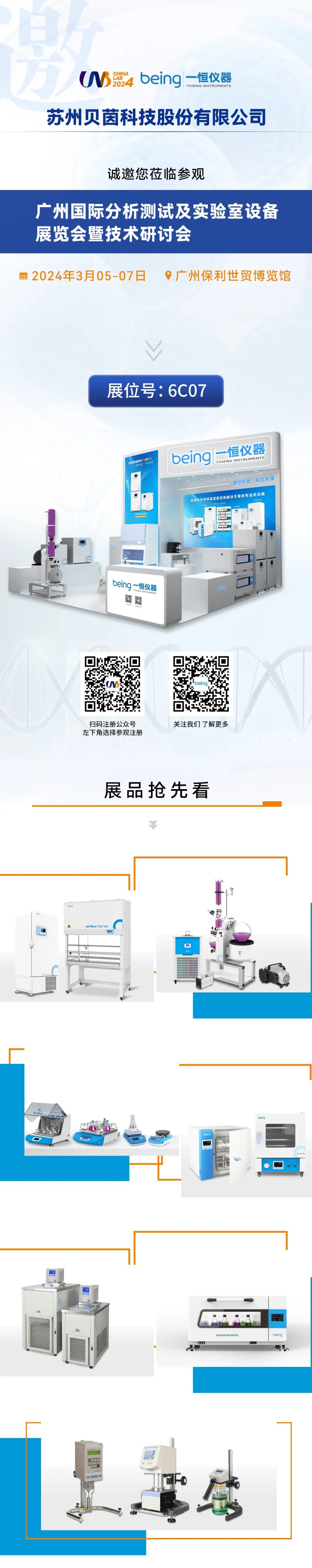 2024-03-04 | 文章來(lái)源: | 點(diǎn)擊率: 廣州國(guó)際分析測(cè)試及實(shí)驗(yàn)室設(shè)備展覽會(huì)暨技術(shù)研討會(huì)(下文簡(jiǎn)稱“CHINA LAB”)將于2024年3月5日-7日在廣州保利世貿(mào)博覽館舉辦。本屆展會(huì),貝茵科技將在6C07展位現(xiàn)場(chǎng)展示半導(dǎo)體制冷低溫培養(yǎng)箱,生物搖床,加熱循環(huán)水槽,真空干燥箱,鼓風(fēng)干燥箱,磁力攪拌器,旋轉(zhuǎn)蒸發(fā)儀,低溫循環(huán)水槽,隔膜泵,真空控制器,疊加振蕩器,超低溫冰箱,生物安全柜,粘度計(jì)等設(shè)備,并將推出新款半導(dǎo)體系列—— 半導(dǎo)體制冷低溫二氧化碳培養(yǎng)箱,歡迎您蒞臨交流。