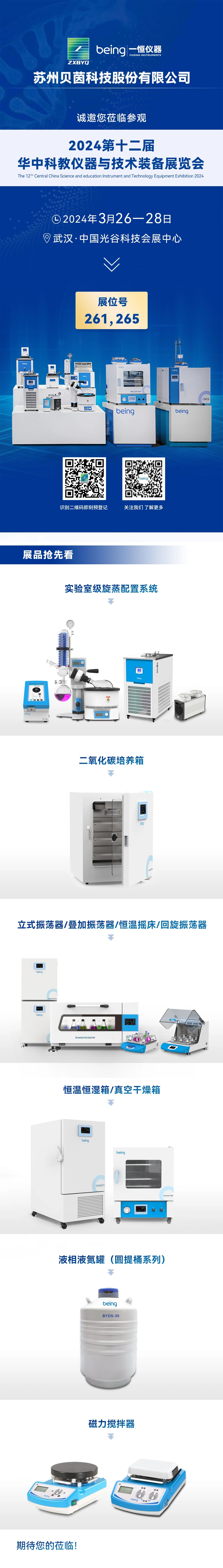 2024-03-22 | 文章來源: | 點擊率: 2024華中科教儀器與技術(shù)裝備展覽會(以下簡稱“2024華中科教裝備展”)將于2024年3月26日至28日在中國光谷科技會展中心舉辦。貝茵科技將在展位:261,265,現(xiàn)場展示疊加振蕩器,二氧化碳培養(yǎng)箱,恒溫恒濕箱,真空干燥箱,磁力攪拌器,恒溫?fù)u床,回旋振蕩器,旋轉(zhuǎn)蒸發(fā)儀,低溫循環(huán)水槽,真空控制器,圓提桶液氮罐,立式振蕩器等設(shè)備儀器。我們邀您參加2024華中科教裝備展,期待在展會上與您相見,攜手合作,促新提效。