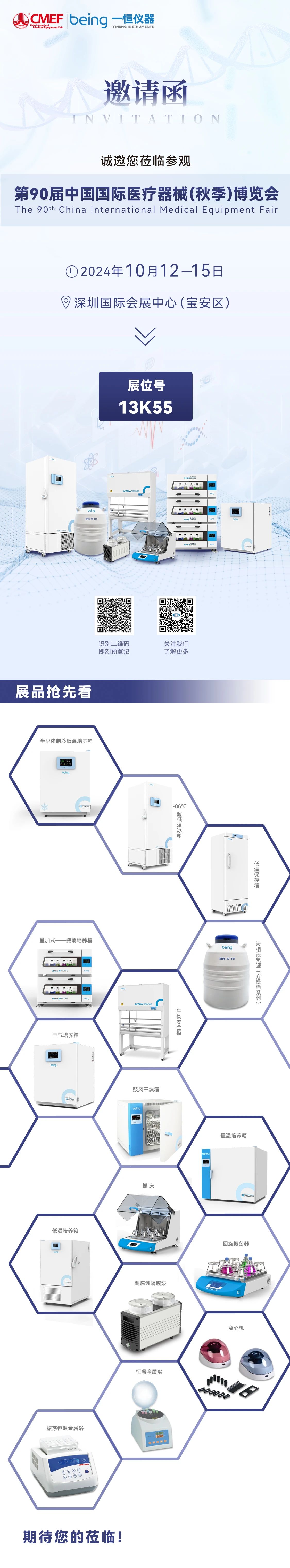 2024-09-27 | 文章來源: | 點(diǎn)擊率: 第90屆中國國際醫(yī)療器械(秋季)博覽會(huì)(CMEF)將于2024年10月12日至15日在深圳國際會(huì)展中心(寶安區(qū))盛大召開。一恒儀器將攜多款明星產(chǎn)品和新一代半導(dǎo)體系列設(shè)備閃耀亮相,展位:13K55,誠邀您一起領(lǐng)略創(chuàng)新產(chǎn)品魅力,期待您的蒞臨和交流!